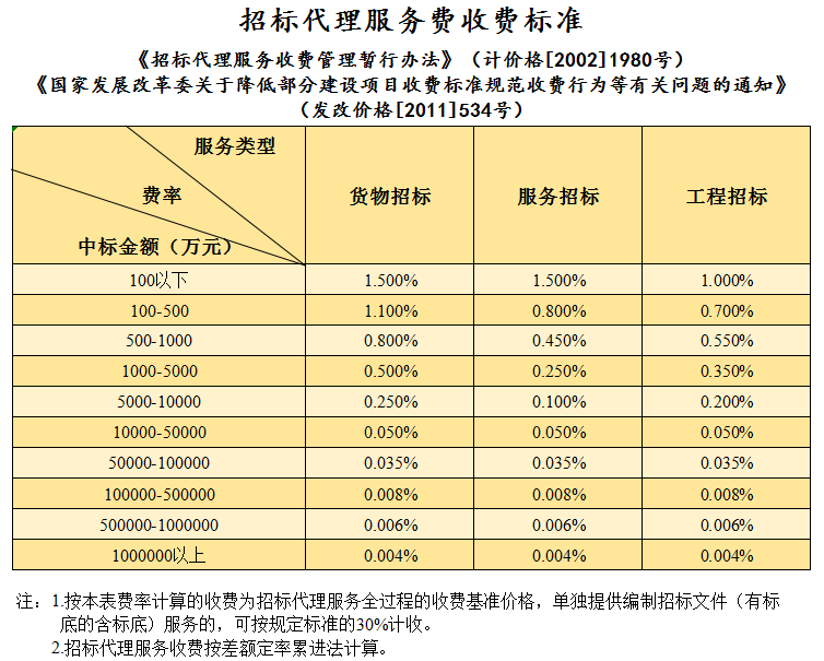 招标代理收费标准